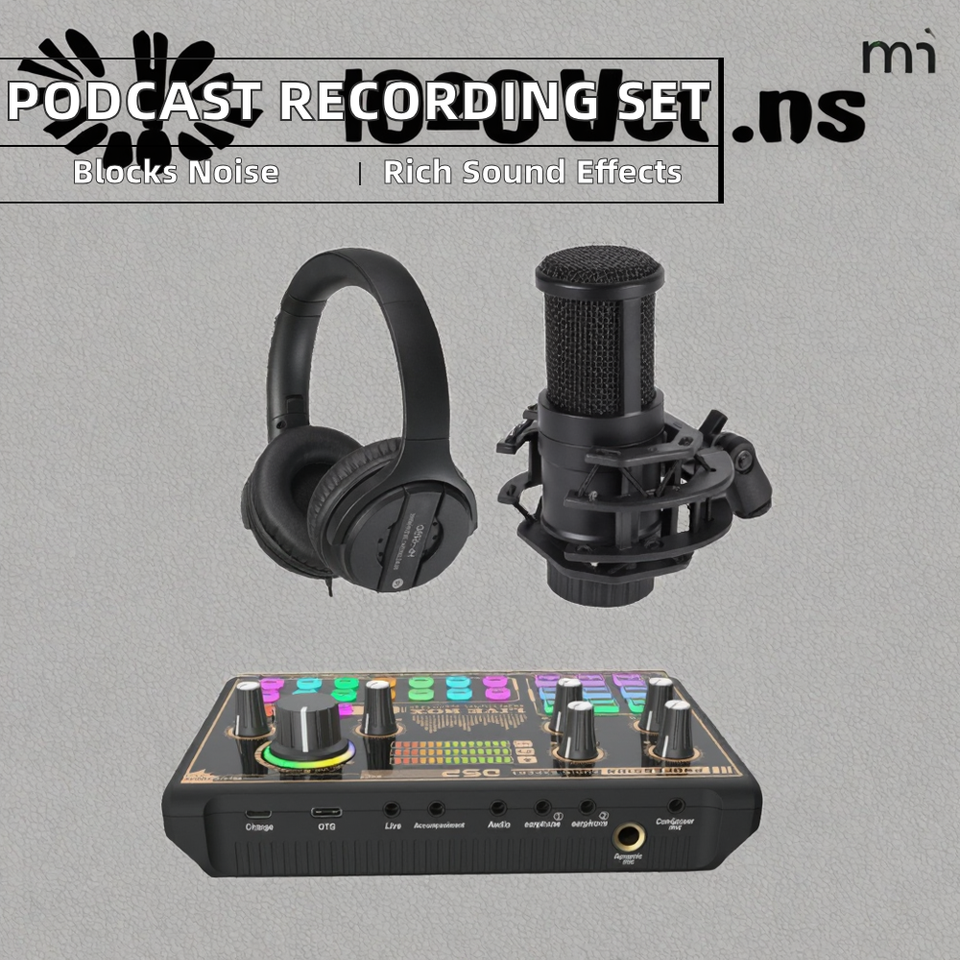 Micrófono de Escritorio para Podcast, Set Completo para Grabación Musical, Cancelación de Ruido, Tarjeta de Sonido para Transmisión en Vivo, Múltiples Efectos de Sonido, Monitor