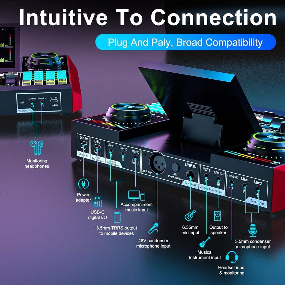2 Canales: Con 2 canales, este mezclador permite la entrada simultánea de múltiples fuentes de audio, proporcionando flexibilidad y control sobre su mezcla de audio durante transmisiones en vivo o grabaciones.
