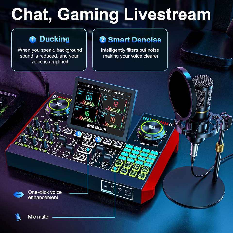 Paquete de Micrófono para Podcast G10 MIXER USB, Mezclador de Audio Externo de 2 Canales para PC/Transmisión en Vivo de Youtube, Canto, Juegos, Placa de Sonido