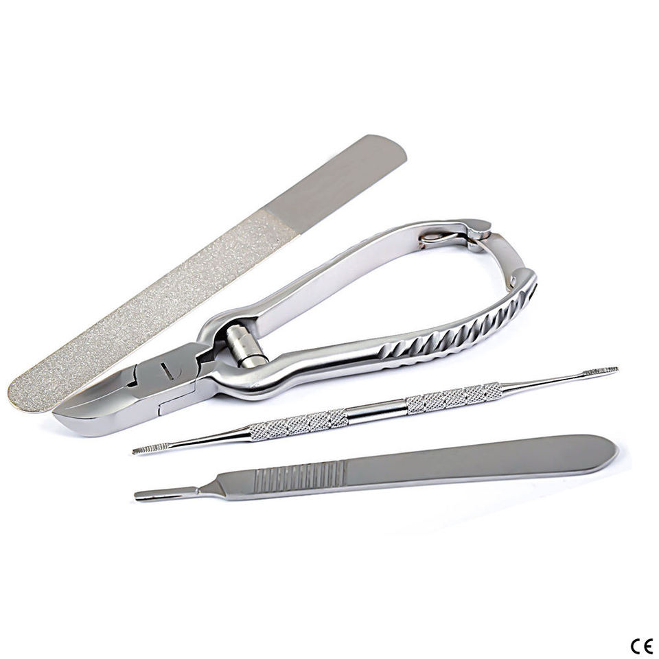 Juego de Instrumentos de Podología Profesional de Lujo, 4 Piezas, Acero Inoxidable, Duradero y Portátil
