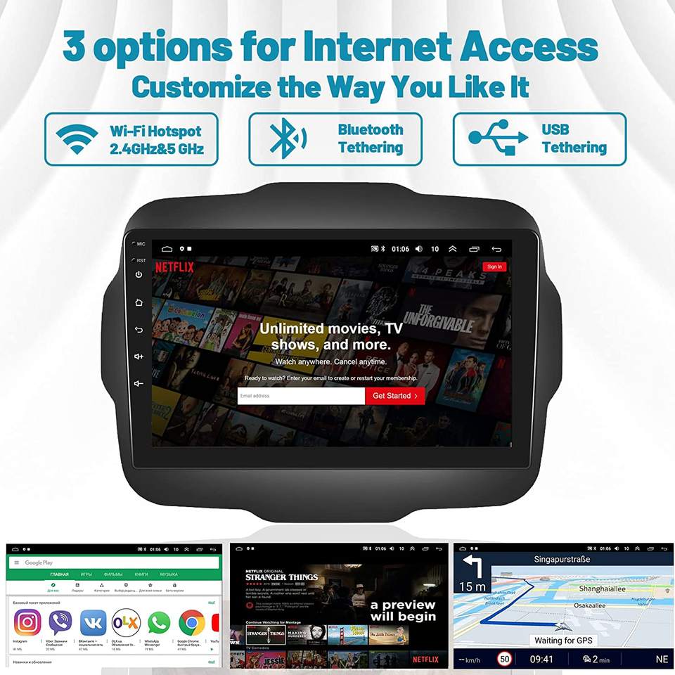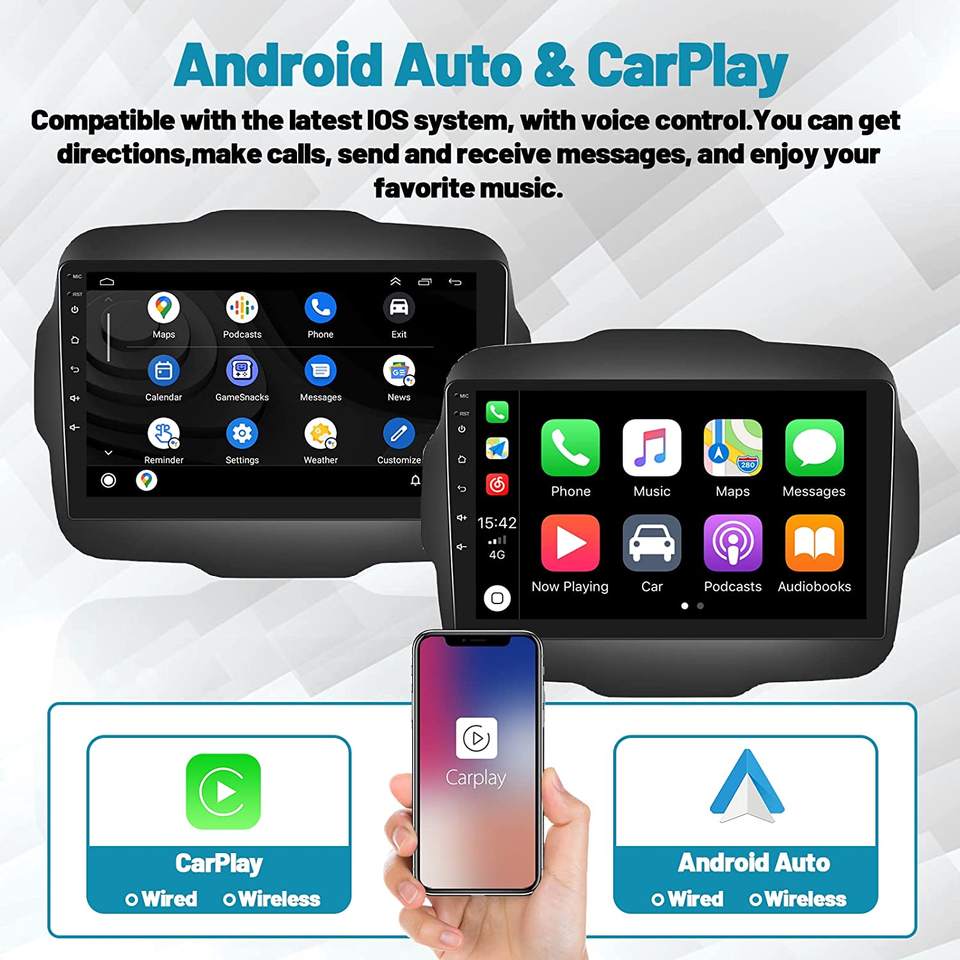 Podofo radio de coche Android 9'' — autoradio para Jeep Renegade 2016-2020, CarPlay inalámbrico, Android Auto, Hi-Fi, WiFi, GPS
