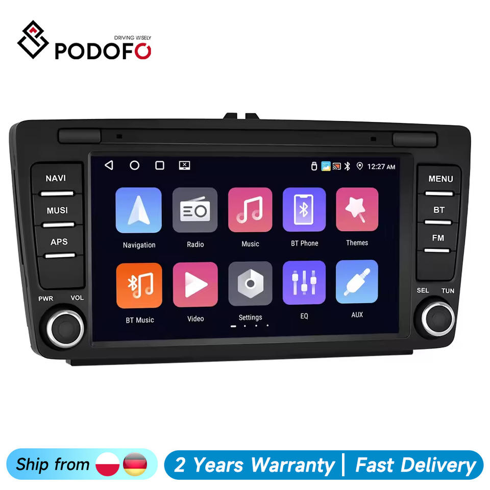 Radio de Coche Android Podofo de 8'' 4+64G con CarPlay/Android Auto Inalámbrico, GPS, WIFI, BT, FM, RDS para Skoda Octavia II/MK2/Yeti/Rapid