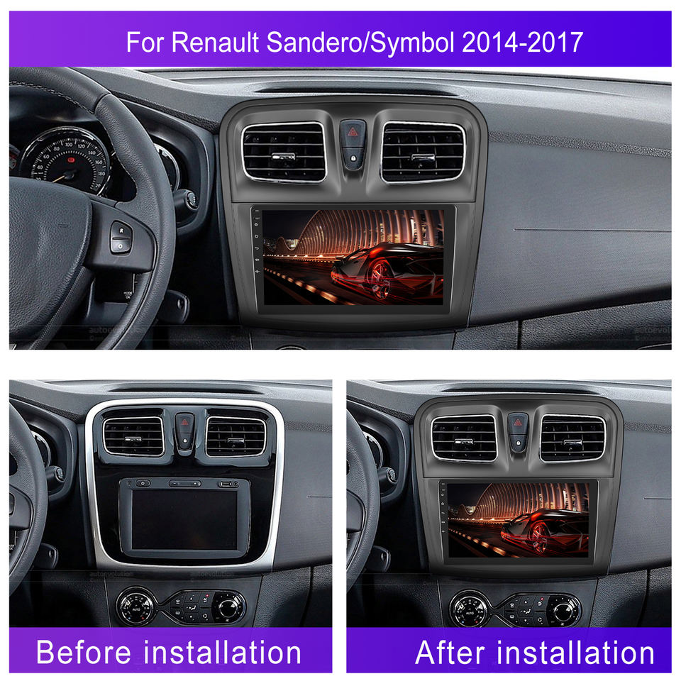 Podofo Android Radio Marco de autorradio de 9 pulgadas para Renault SANDERO/SYMBOL 2014-2017 Carplay Android Auto BT WiFi accesorios de coche