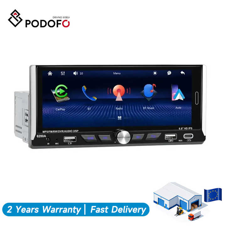 Radio de coche Android Podofo de un solo DIN, 6.9 pulgadas, 2+64G, Carplay/Android Auto, GPS/WIFI/FM/USB/BT/EQ/USB tipo C, del fabricante