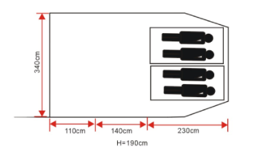 Tamaño de despliegue:(110 + 140 + 230)X340X190CM