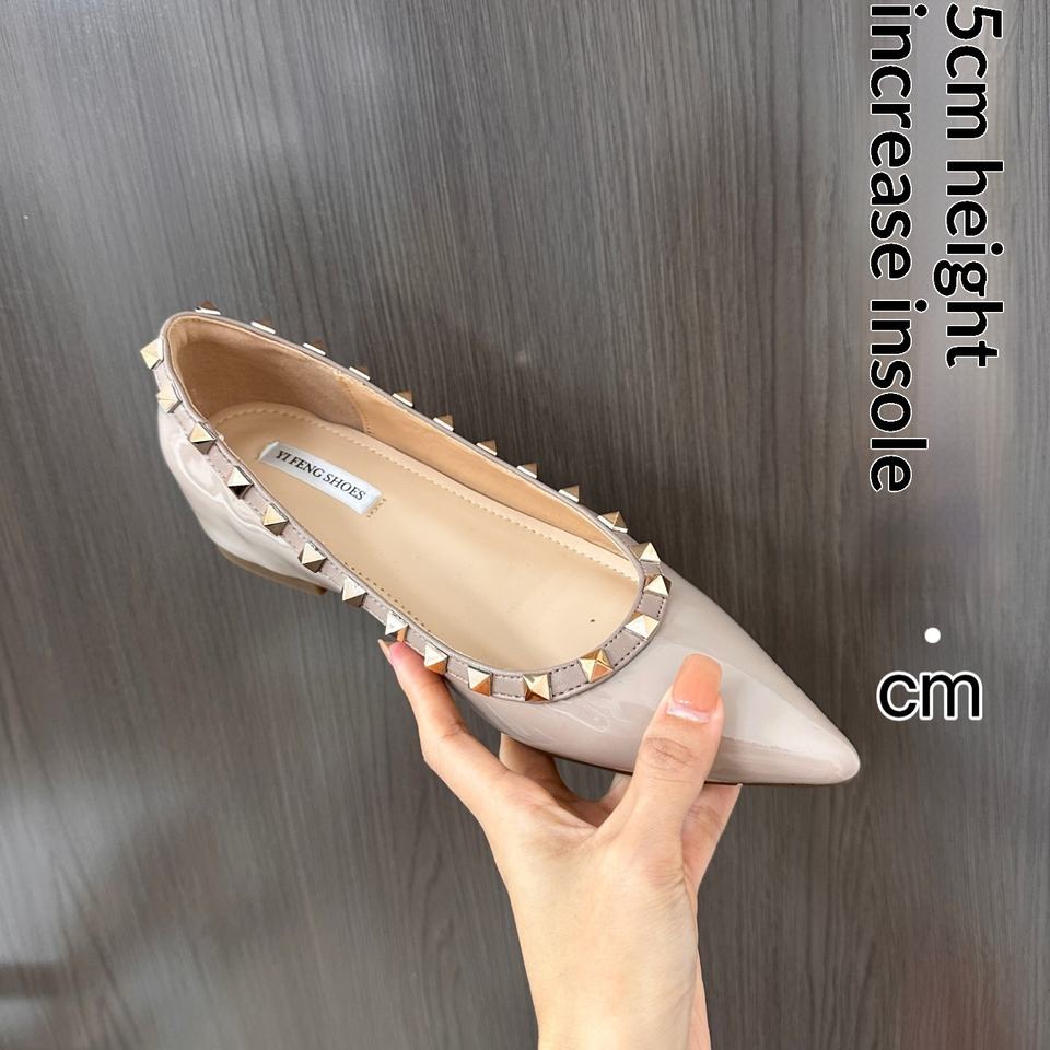 Zapatos de Tacón de Aguja con Remaches ~5cm de Altura, Estilo Francés, Poco Profundos, de Charol Suave, Forro de Piel de Oveja, Suela de Goma, Estilo Joker para Viajar al Trabajo
