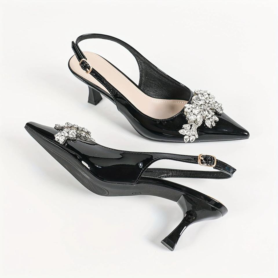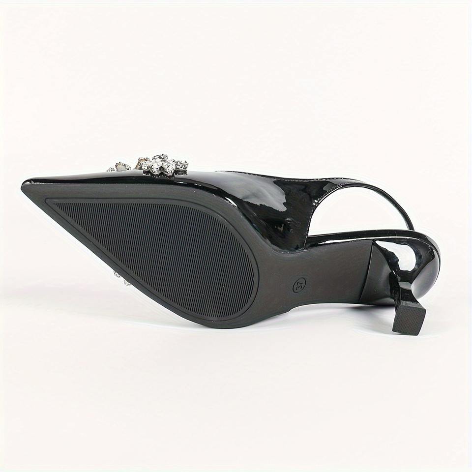 Zapatos de Tacón con Punta Puntiaguda para Mujer con Flores Pintadas en 3D - Sandalias Elegantes de Charol Negro para Mujer