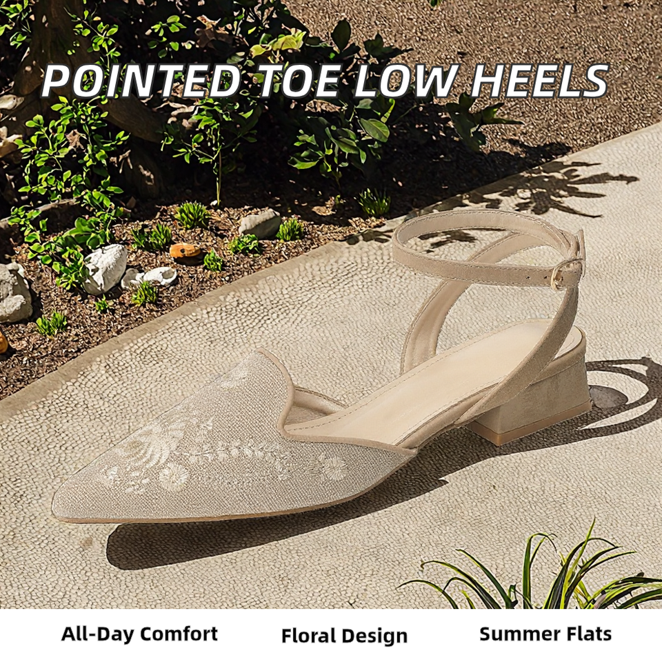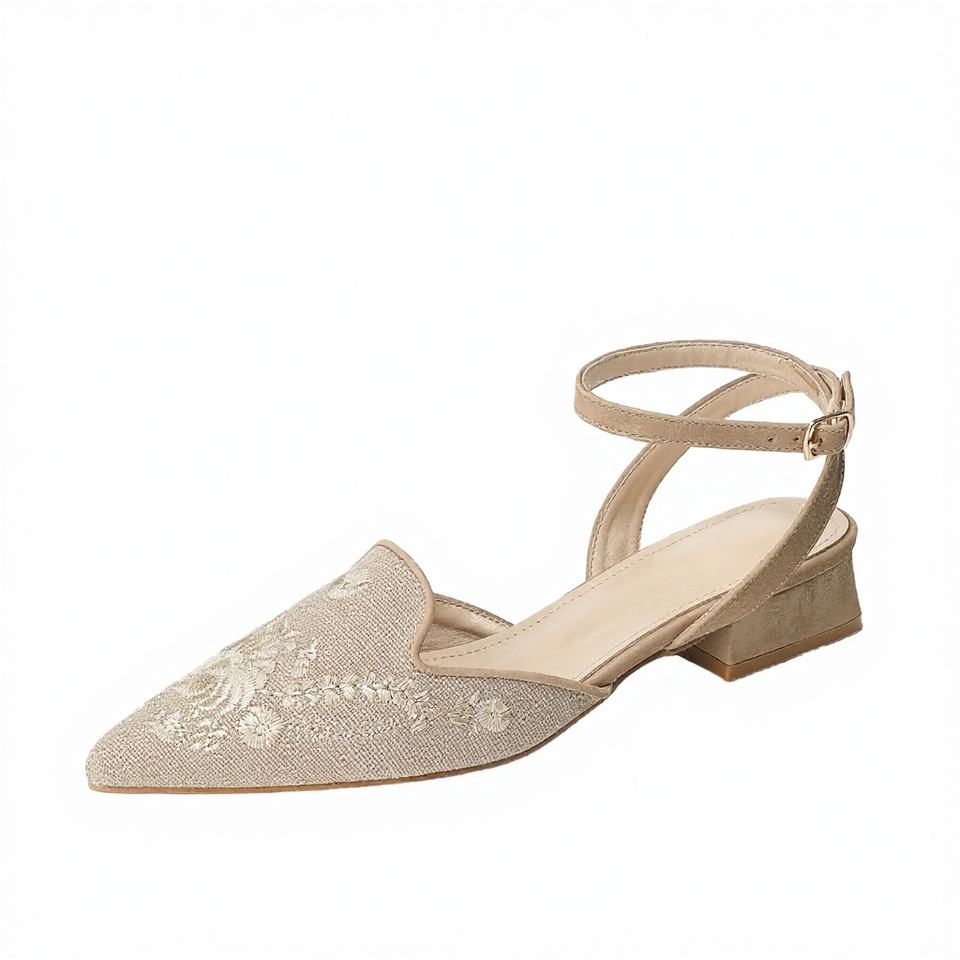 Zapatos planos de tacón grueso con punta, estilo Mary Jane bordados, de boca poco profunda, para mujer, de verano, suaves y elegantes.