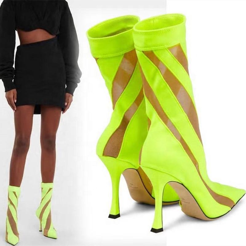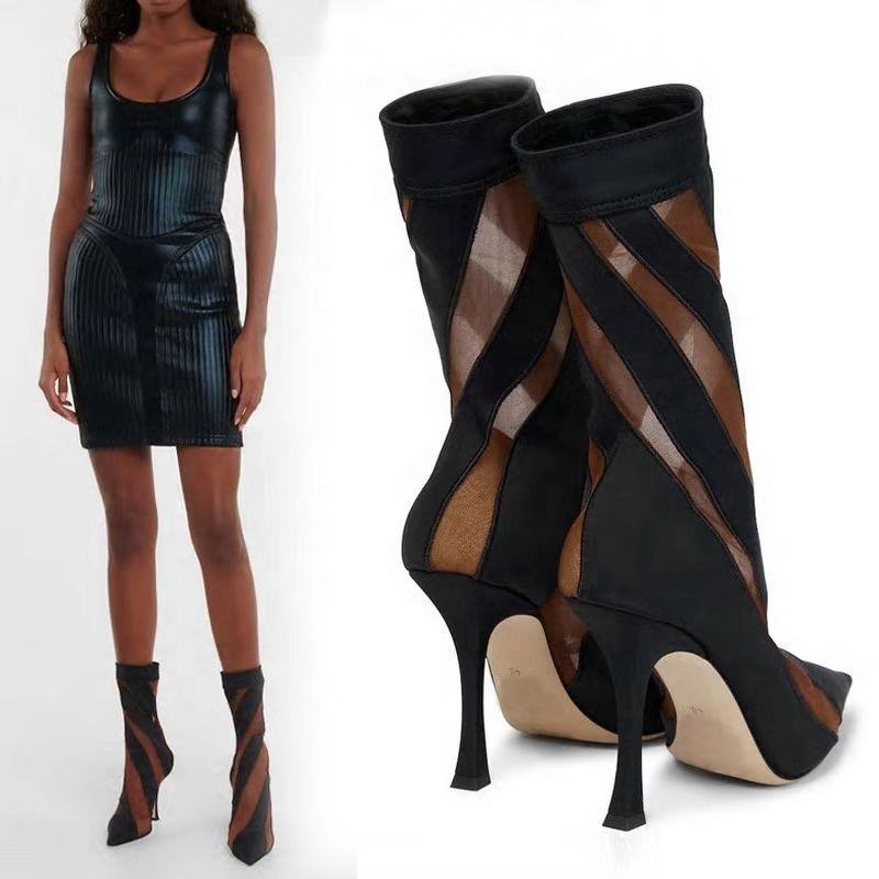 Botines de Tacón Alto con Punta Puntiaguda y Diseño de Rayas en Patchwork, Moda Primavera Verano 2022, Botines Cortos Transpirables y Suaves para Mujer, Talla 45