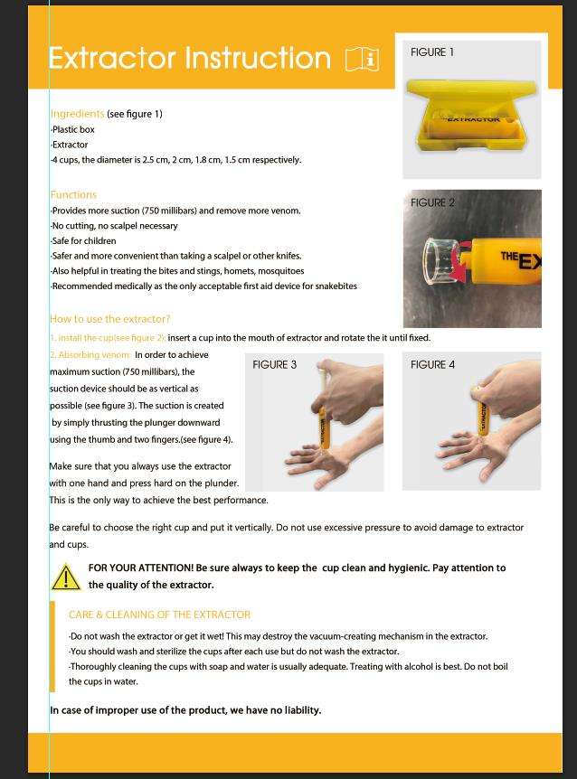 Extractor de venenos, bomba de succión de cuatro tamaños para arañas y serpientes, Kit de eliminación de Venom