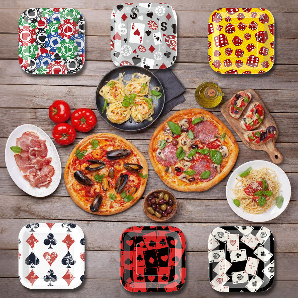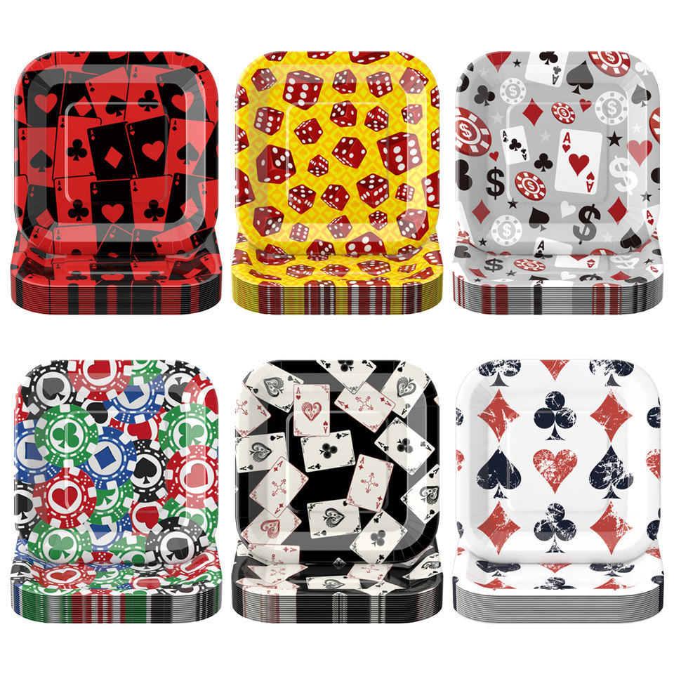 Juego de Vajilla Desechable Biodegradable con Tema de Póker, Decoración para Fiesta de Casino, Monedas Doradas, Año Nuevo Chino, Fiesta para Adultos