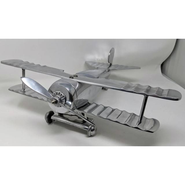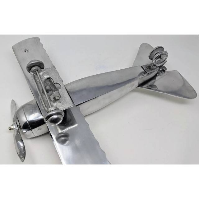 Modelo de biplano de aluminio pulido, avión Vintage, decoración de avión de Metal, regalo coleccionable, decoración de oficina en casa, níquel brillante