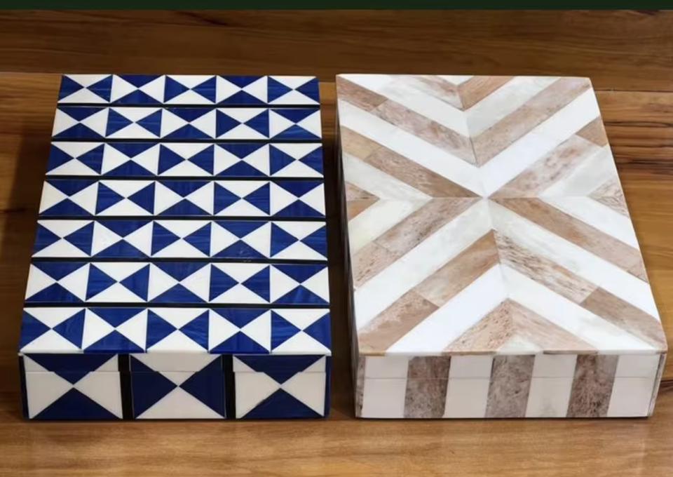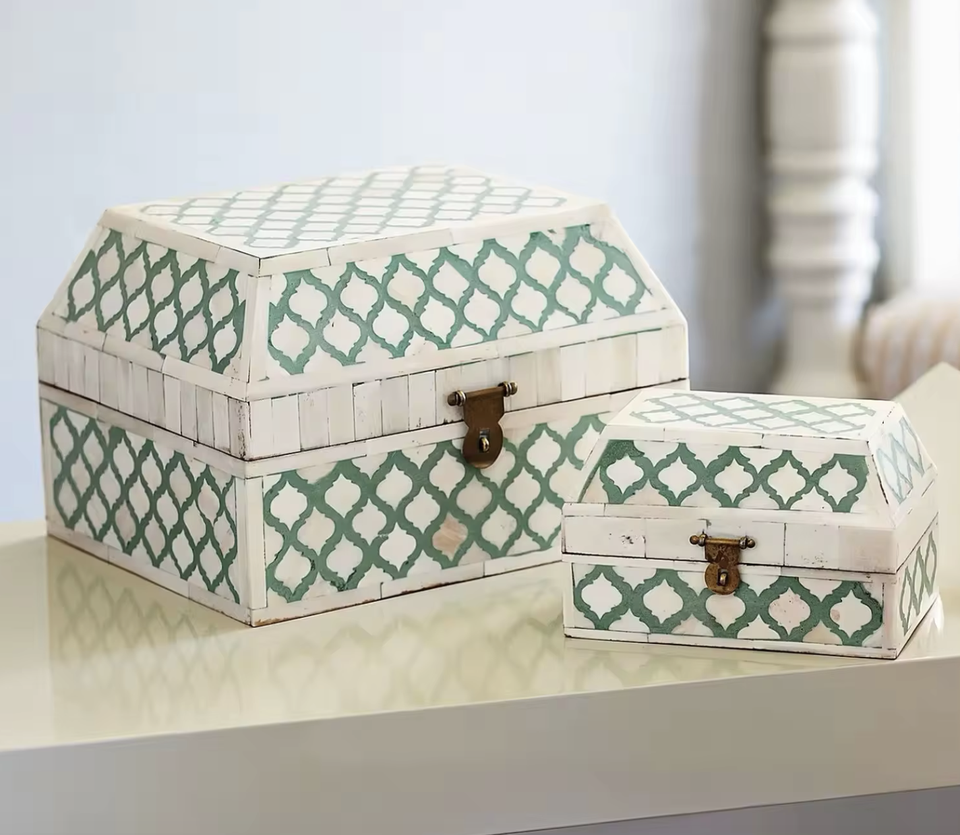 Joyero de Hueso Pulido con Incrustaciones, Estilo Náutico y Animal, Solución de Almacenamiento Ecológica