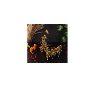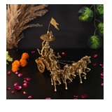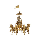 Estatuilla de latón pulido Krishna Arjuna Rath, carro de 4 caballos, pieza de exhibición para decoración del hogar y el templo, iconografía India