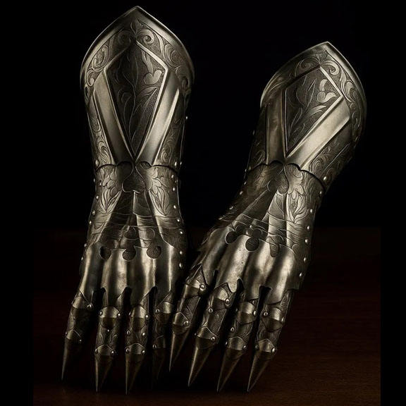 Guantes de guantelete grabados en metal plateado pulido | Armadura de cosplay medieval | Disfraz de fantasía gótica | para Halloween para