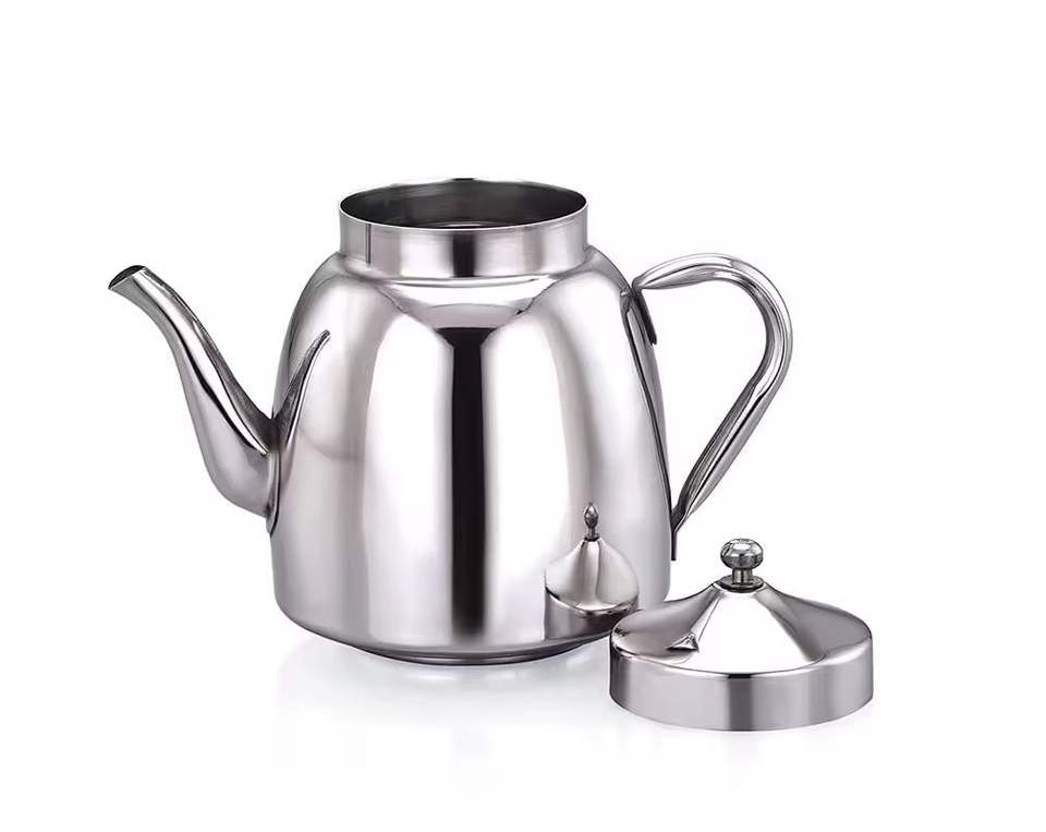 Tetera de Acero Inoxidable Pulido, Cuerpo Redondeado, Boquilla Corta, Asa Arqueada, Agarre Negro, Utensilios de Cocina Duraderos, Tetera Tradicional