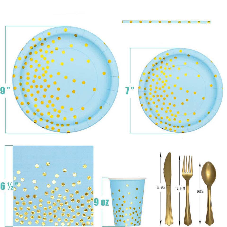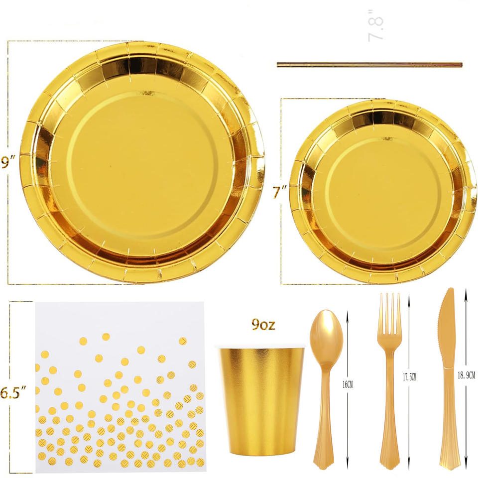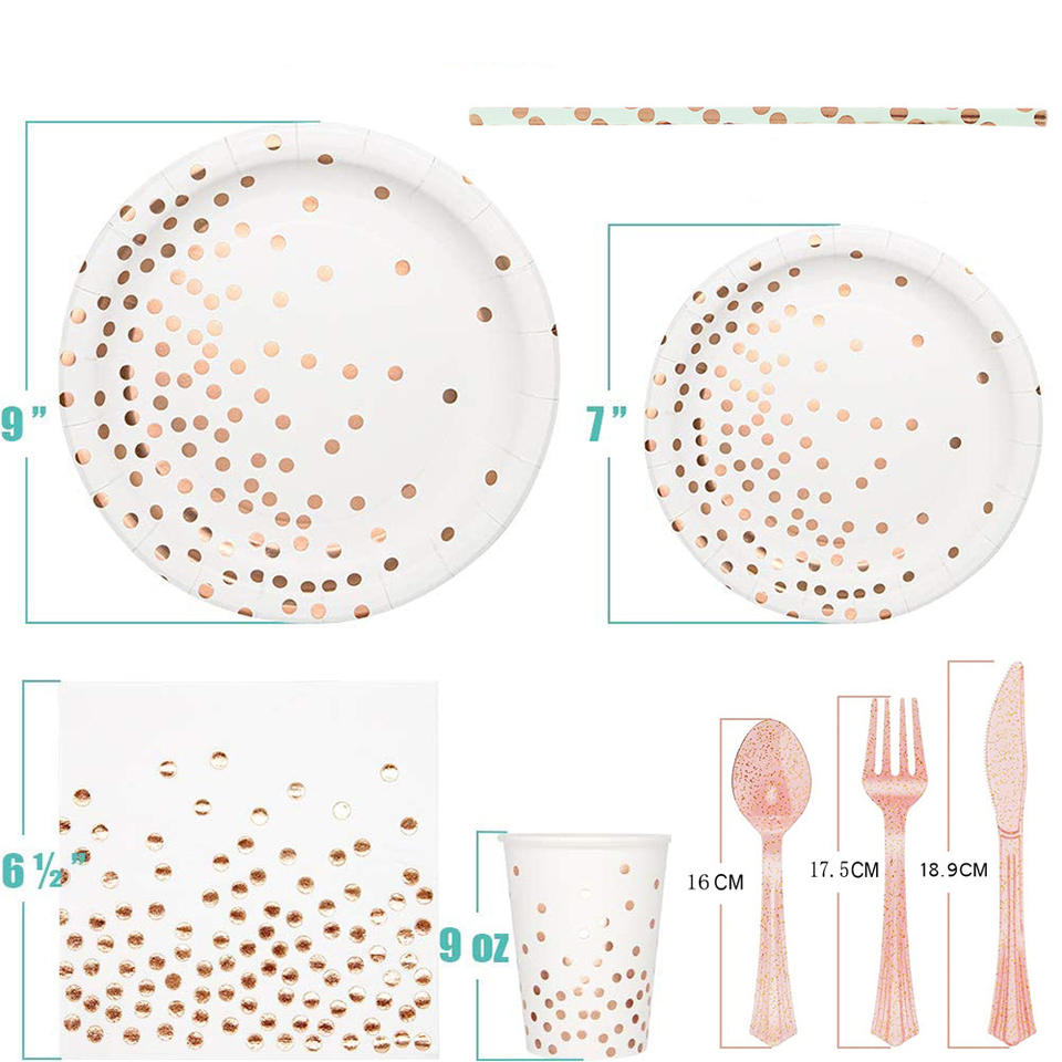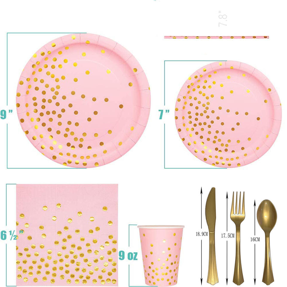 Juego de Vajilla Desechable de Papel con Diseño de Puntos Redondos en Rosa, Negro y Dorado para Niños y Fiestas de Año Nuevo, Decoraciones para Mesa