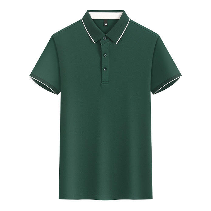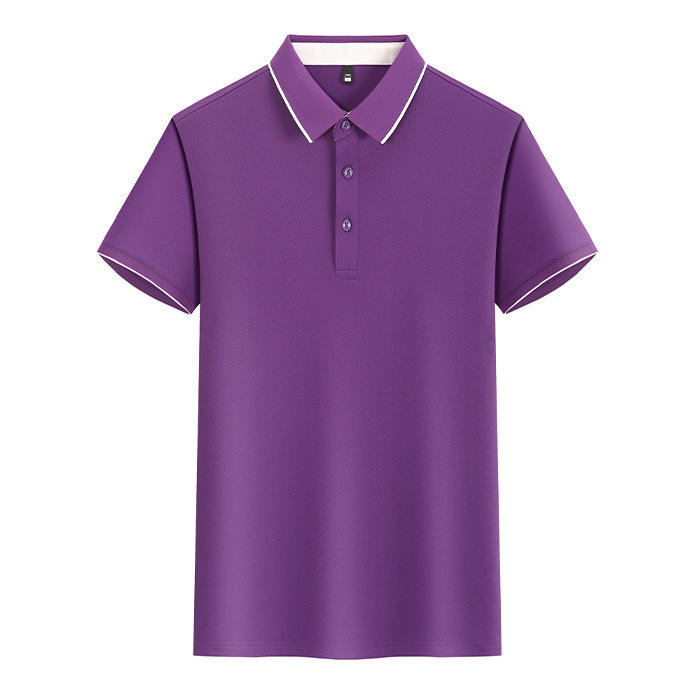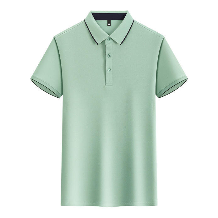 Camisa Polo de Color Sólido con Ribete en Contraste, de Poliéster, Manga Corta, para Uso Diario
