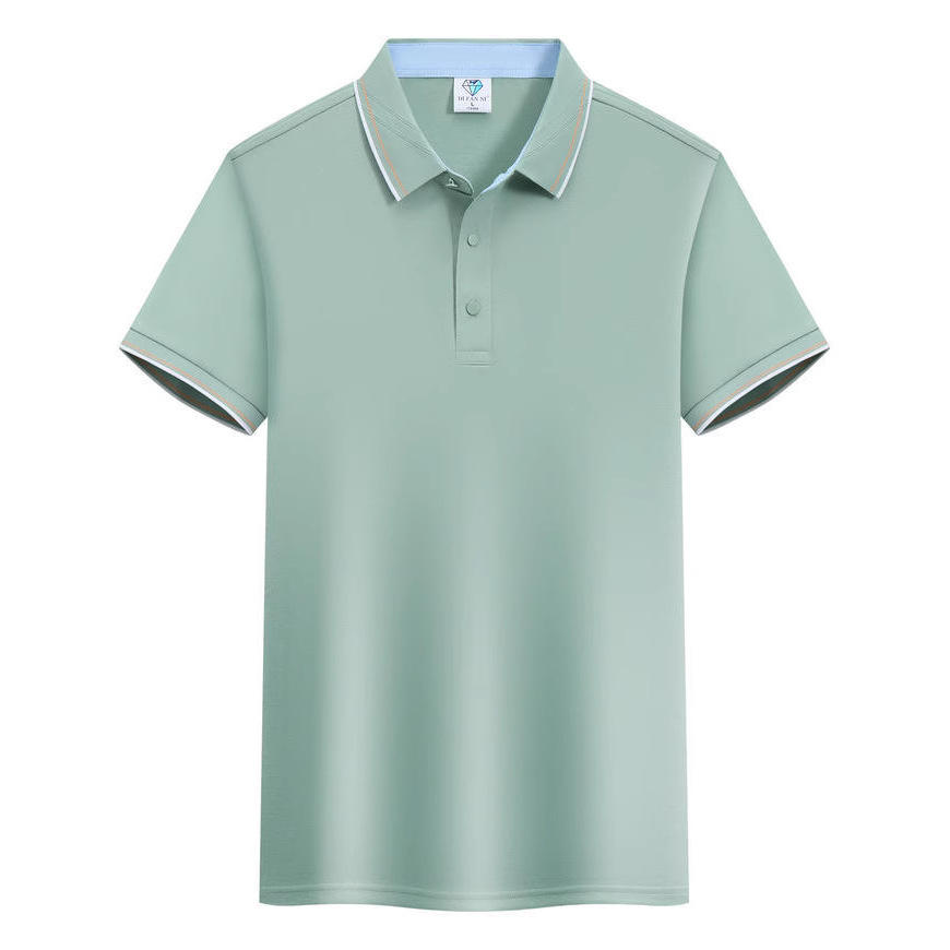 Polo Shirt Solid Color Polyester Fiber Contrast Trim Daily Wear Short Sleeve Men's Work Uniform Summer Clothing