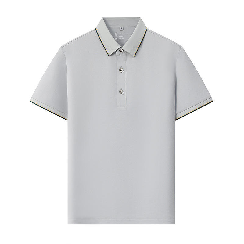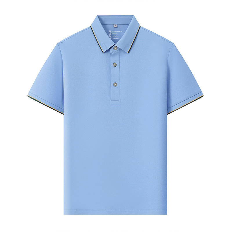 Camisa Polo de Color Sólido, Poliéster, Manga Corta, Ribete en Contraste, Uso Diario