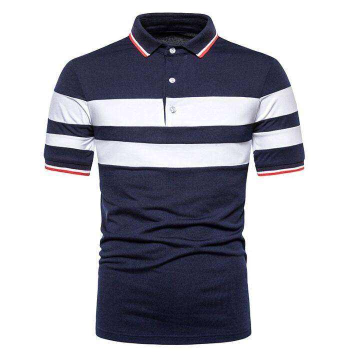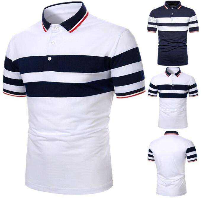 Polo con retazos de dos colores, camiseta de manga corta suelta y transpirable con solapa para hombres, polos casuales y de moda
