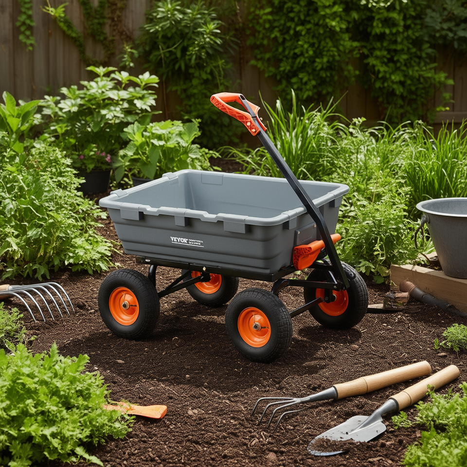 Carretilla de Jardín Plegable con Llantas de 13 Pulgadas, Capacidad de 1200 Libras, Estructura de Acero, Manija Convertible
