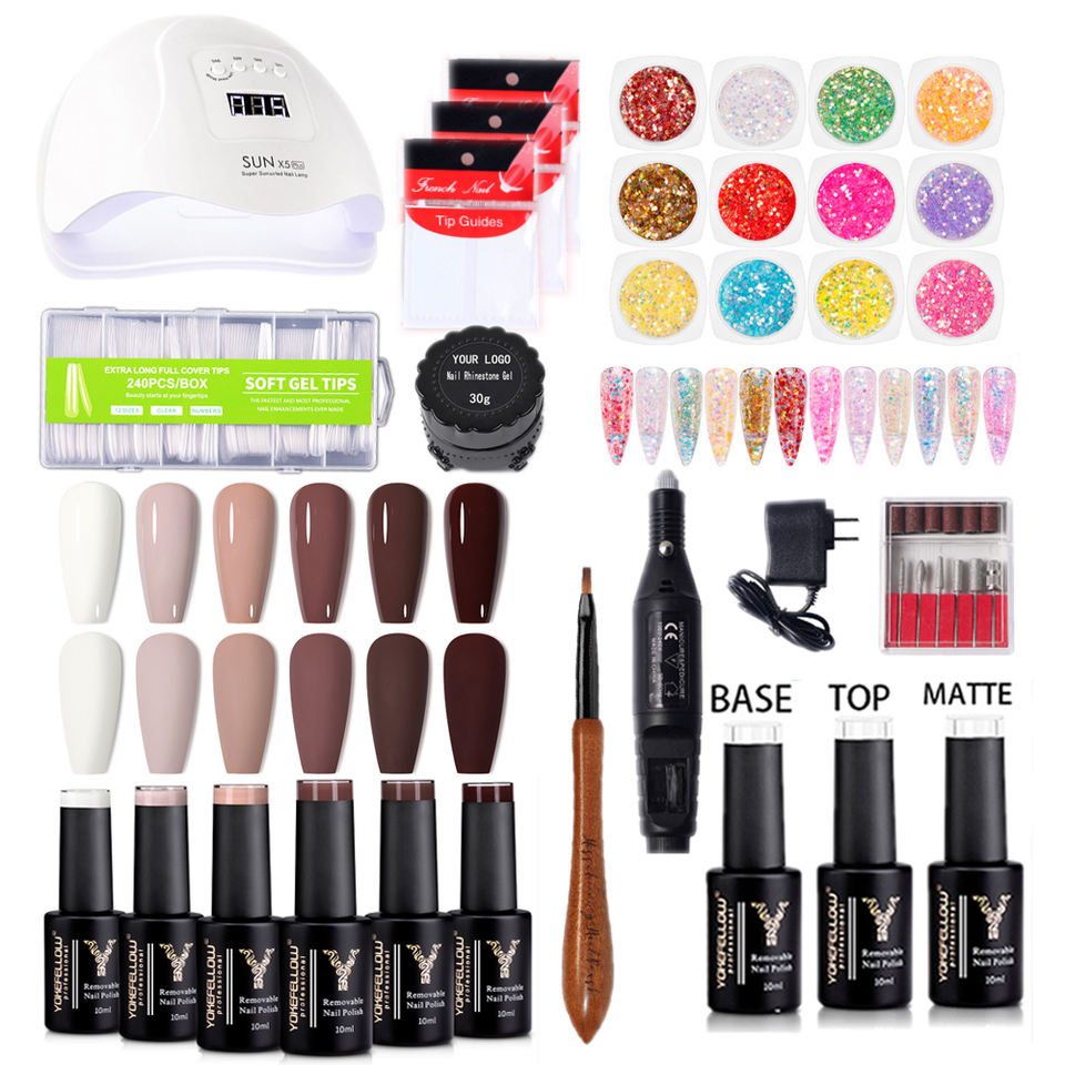 Poly Nail Set Poly Nail Gel Kit 10ML Extensión Nail Acryl Gel Nude 18 colores con Slip Solution Stater Kit para principiantes