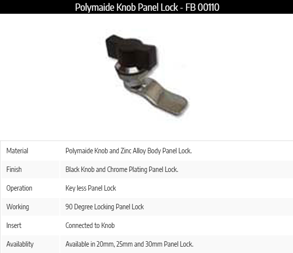 Availablity:Available in 20mm, 25mm and 30mm Panel Lock.