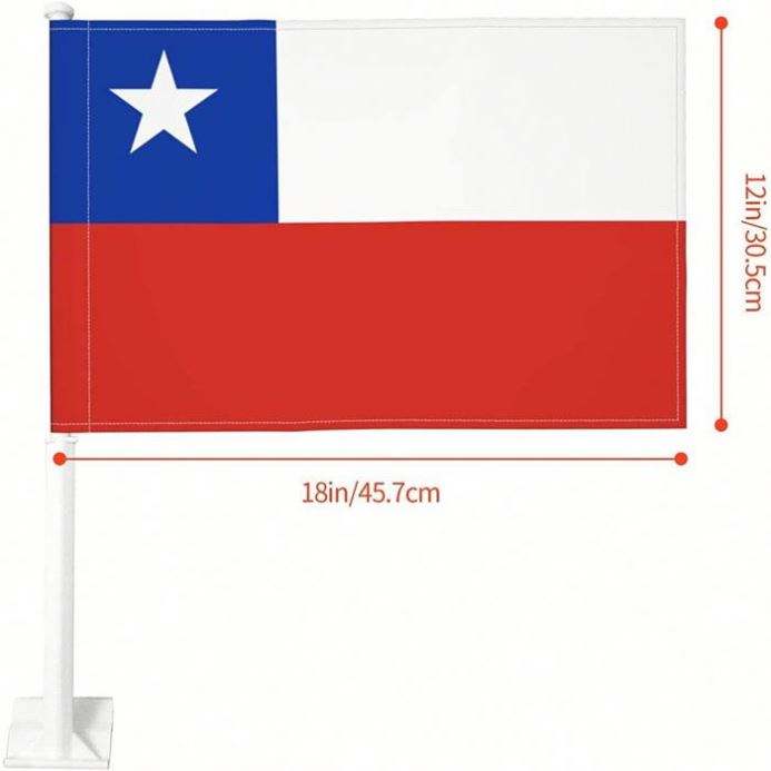 Bandera de Poliéster de Chile para Ventana de Auto, 12''x18'', para Decoraciones, Suministros para Desfiles, con Asta Flexible