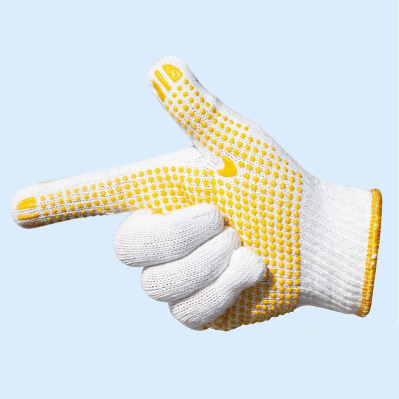 Guantes de Trabajo de Protección de Seguridad de Punto de Hilo de Poliéster y Algodón, Guantes de Lona con Puntos Antideslizantes, Guantes de Trabajo de Seguridad