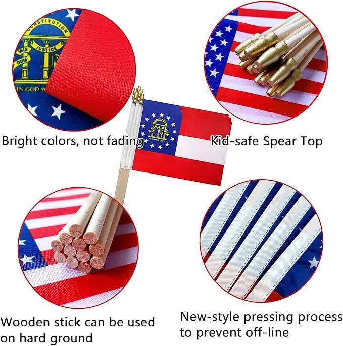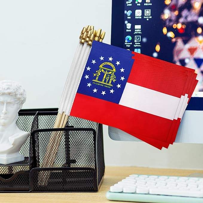 Poliéster logotipo personalizado Georgia miniatura palo de mano en miniatura portador de bandera sostiene ondeante bandera con poste de plástico o madera