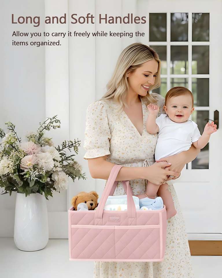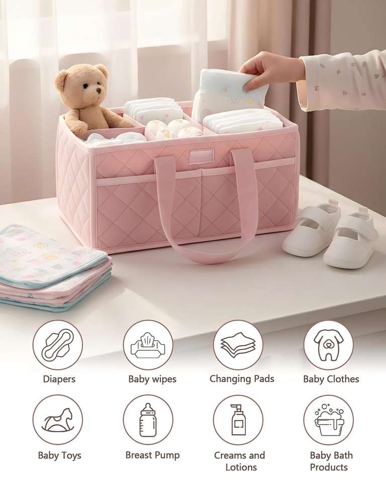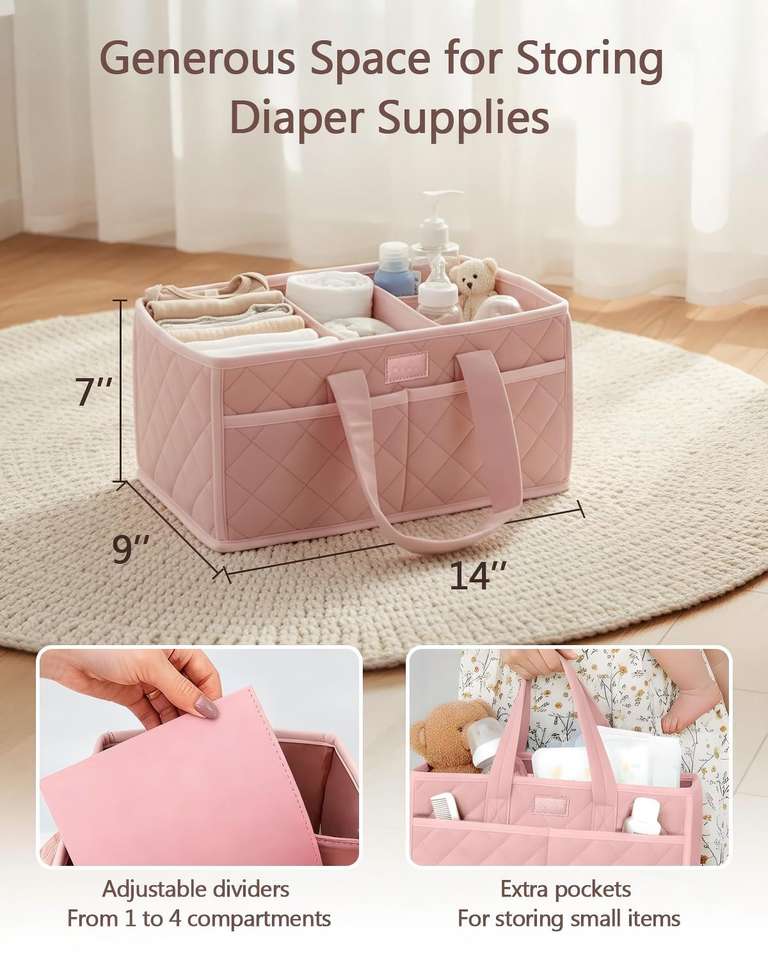 Organizador de Pañales de Poliéster con 3 Compartimentos Extraíbles, 4 Bolsillos Laterales, Portátil, para Uso en el Coche o Guardería, Resistente al Agua, Gran Capacidad