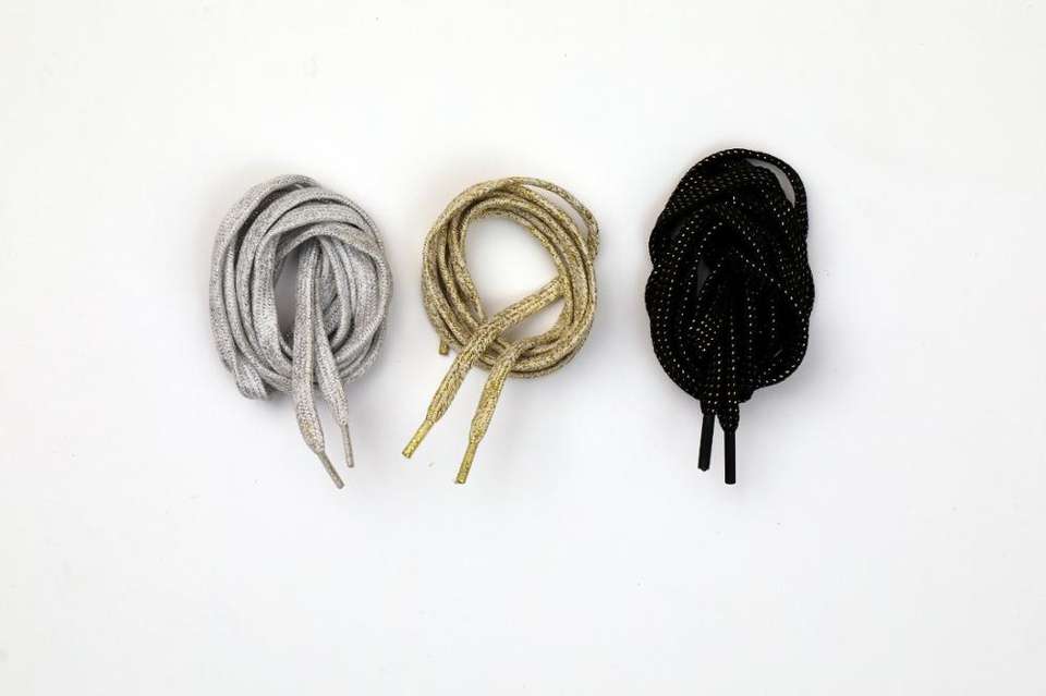 Accesorio con capucha de cordón plano y elástico de poliéster Par perfecto de cordones Muestra gratis
