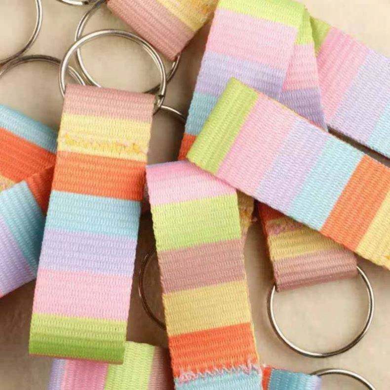 Accesorios de poliéster para llaveros: Parche decorativo de tela para llavero, colgante de cuerda colorido para mochila