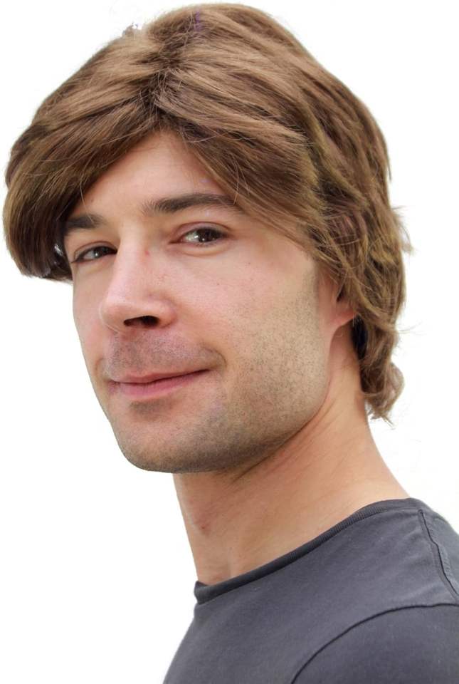 Peluca moderna de poliéster de color marrón para hombres, fila lateral corta PW0174-P6(A405)