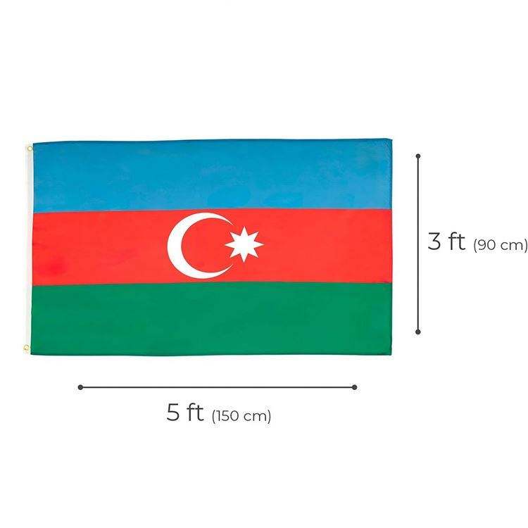 Bandera de Azerbaiyán de poliéster impresa con la bandera nacional de todos los países, 3x5 pies, con 2 ojales de latón.