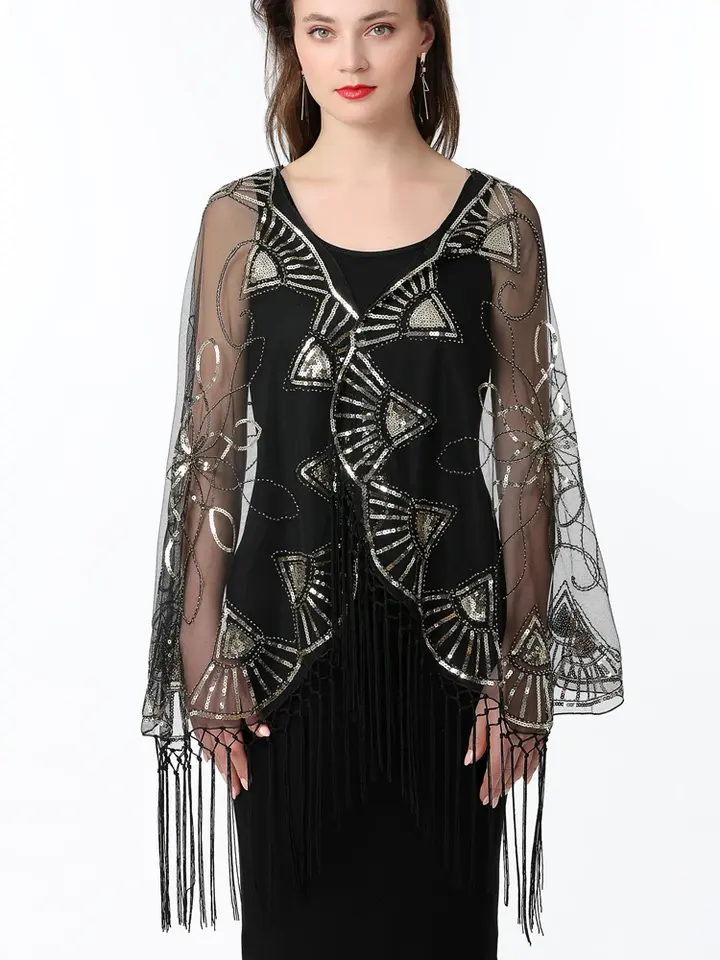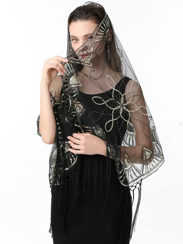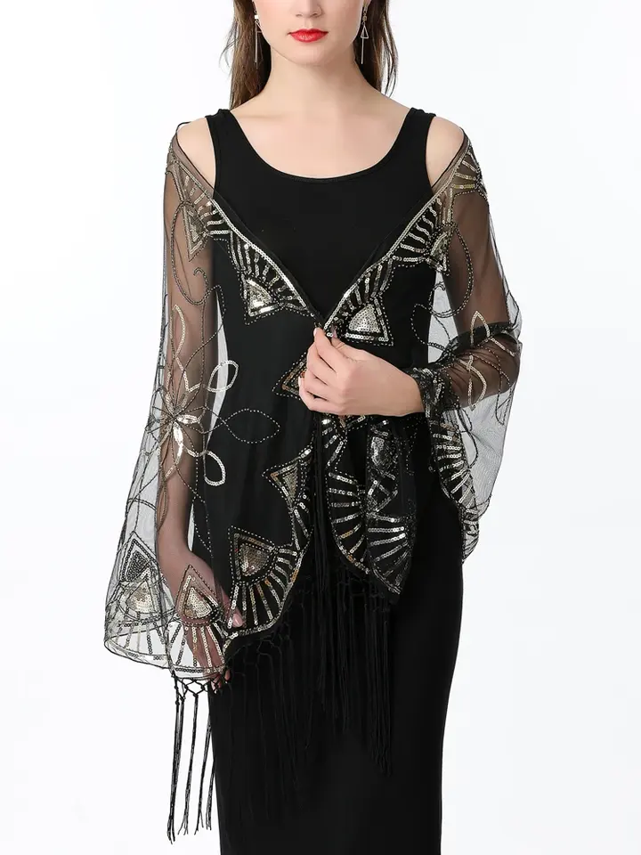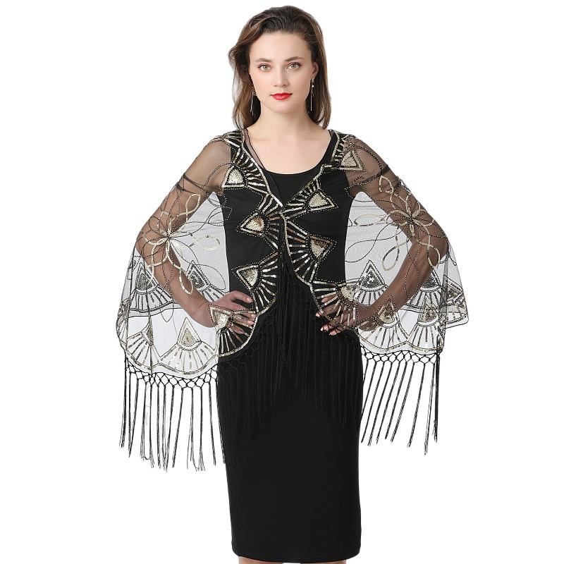 Chales de Lentejuelas Cuadradas de Poliéster, Vestidos de Noche, Boleros para Novia y Damas de Honor, Chales para Fiesta de Bodas, Capa con Borlas, Chal de Boda
