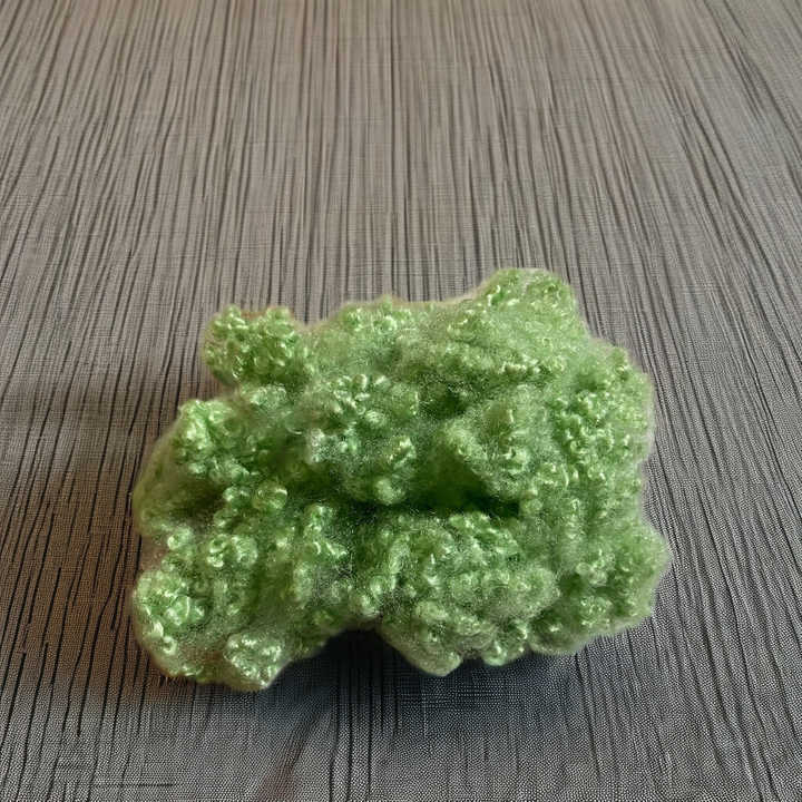 Fibra cortada de poliéster 15D HCS verde Grado A Vikohasan Fabricante de fibra reciclada para la fabricación de cojines y colchones