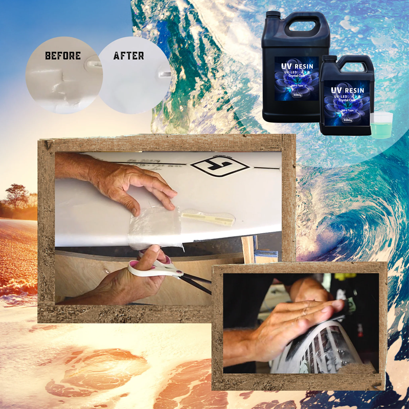 Construcción, Fibra y ropa, Calzado y cuero, Embalaje, Transporte, Carpinteria, Surfboard Repair resina UVAplicación