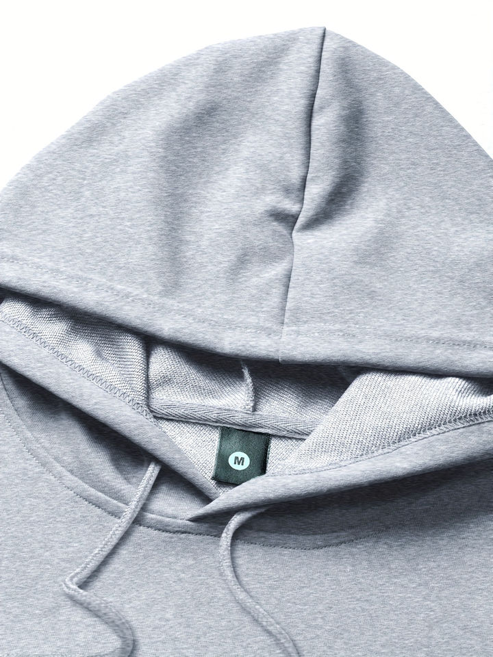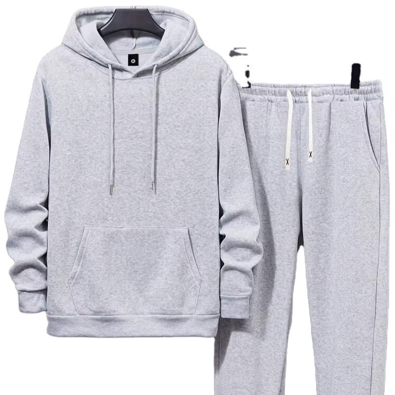 Conjunto de chándal de poliéster-Sudadera con capucha de color sólido y joggers con cordón con bolsillos-Manga larga 450gsm