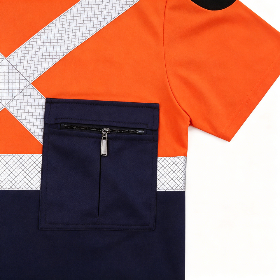 Polyester Work Reflective Safety Shirt Customized Security Short Sleeve High Visibility Safety T-Shirt Construction Shirt