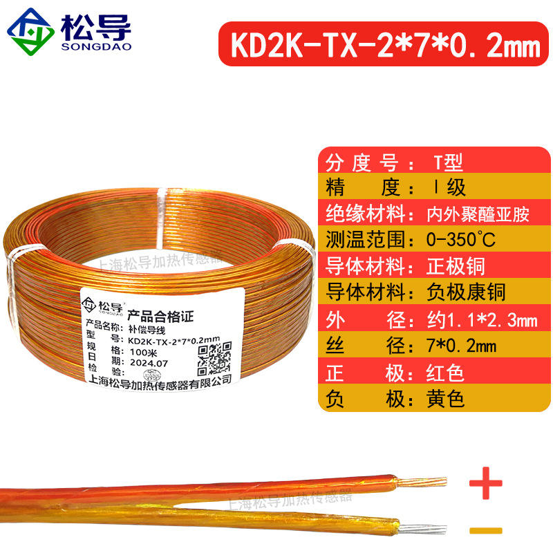 Cable de compensación de termopar de poliimida, cable de señal impermeable multifilar tipo K TJ, cable de extensión RTD Pt100