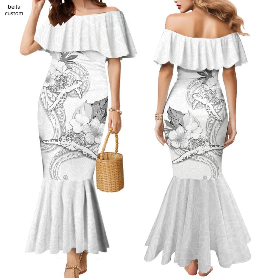 Polinesia pareja de tortugas marinas vestido de sirena blanca regalo del día de San Valentín vestido de talla grande
