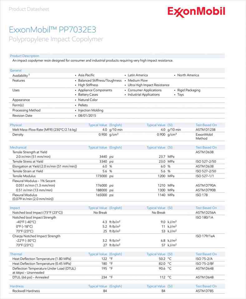 Alto impacto, Rigidez/tenacidad equilibrada, Alta rigidez, Flujo medioCaracterística