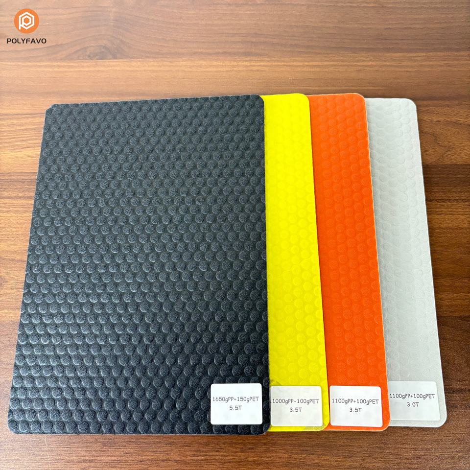 Estructura del material:Núcleo de nido de abeja de PP con superficie de fieltro no tejido