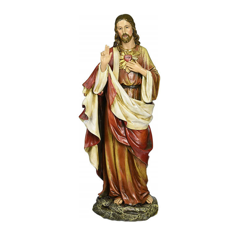 Polyresin/resina 10,25 pulgadas de alto Sagrado Corazón de Jesús de piedra de resina pintado a mano estatua
