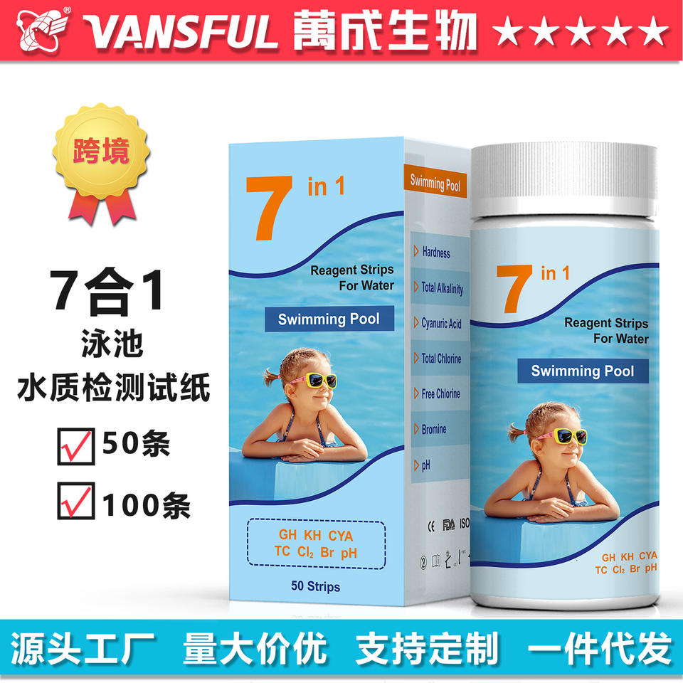 Tiras reactivas para piscinas, 50/100 unidades, detección multiparámetro para la calidad del agua de la piscina, pH, cloro, bromo, ácido úrico