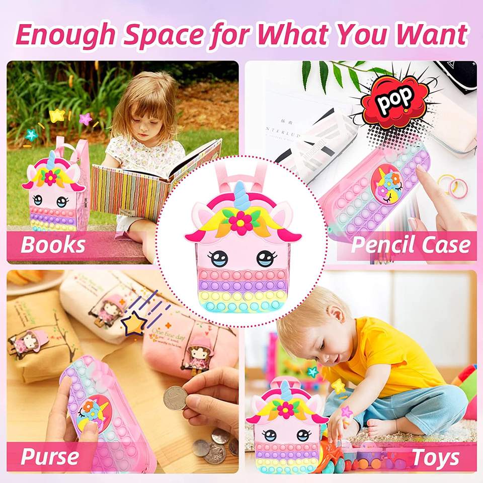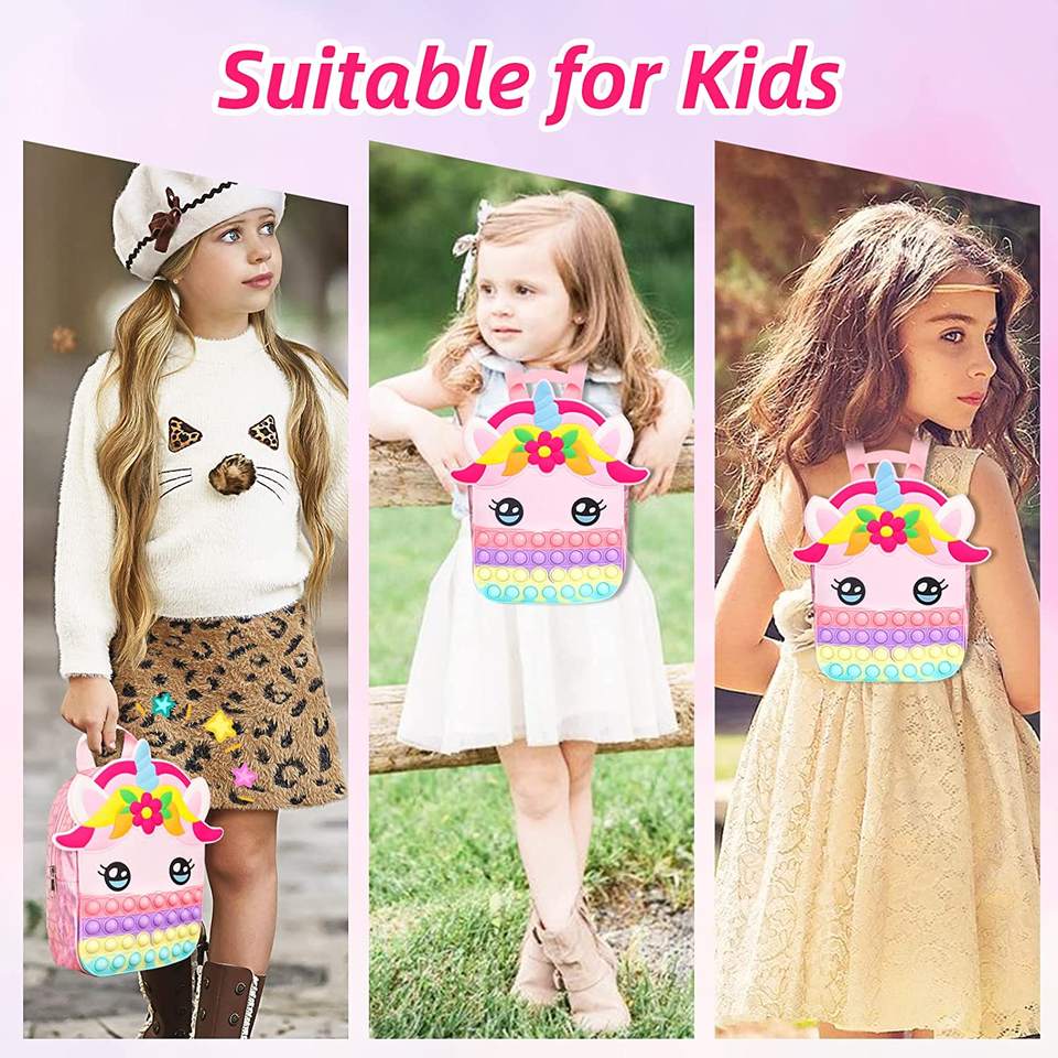 Pop-mochila de juguete sensorial de burbuja para niñas, bolso de hombro de unicornio Pop