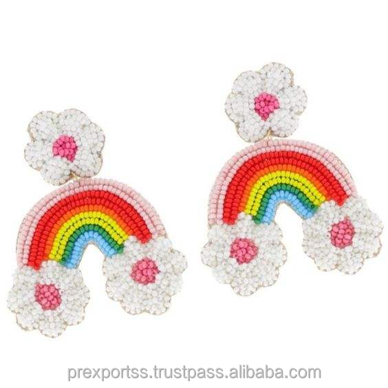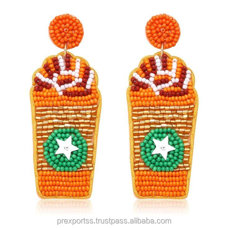 Pendientes Colgantes con Diseño de Flor Bohemia y Cuentas de Semillas de Palomitas de Maíz, Estilo Funky, Diseño de Comida, Modernos, para Fiestas, Elegantes y a la Moda