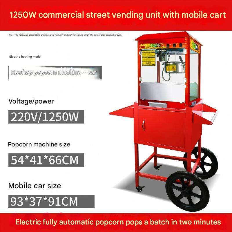 Máquina Expendedora de Palomitas de Maíz Comercial Automática con Carrito, Máquina de Palomitas de Maíz Eléctrica o a Gas de Acero Inoxidable, Máquina de Palomitas de Maíz Móvil